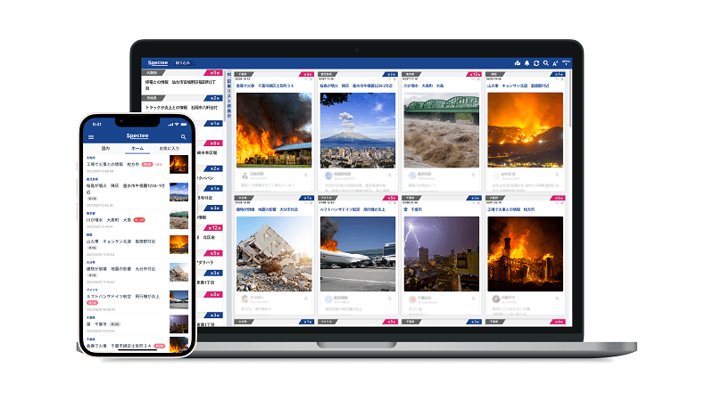 | 業務内容 | 「”危機”を可視化する」をミッションに、AIリアルタイム防災・危機管理サービス『Spectee Pro』、製造業向けのサプライチェーン・リスク管理サービス『Spectee Supply Chain Resilience』を提供。 |